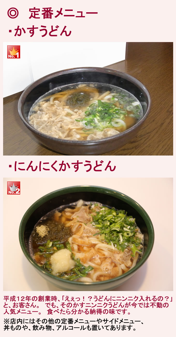 |かすうどんとは|実店舗メニュー|通信販売|アクセス|冷凍自販機|特定商取引法に基づく表記|FC2店|